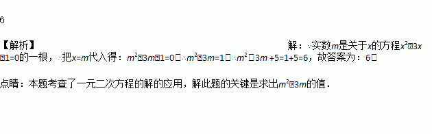 已知实数m是关于x的方程x2-3x-1=0的一根,则代数式m2-3m +5值为_______.