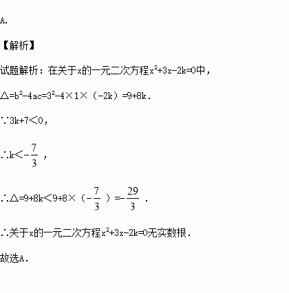 若3k+7<0,则关于x的一元二次方程x2+3x-2k=0的根的情况是( )