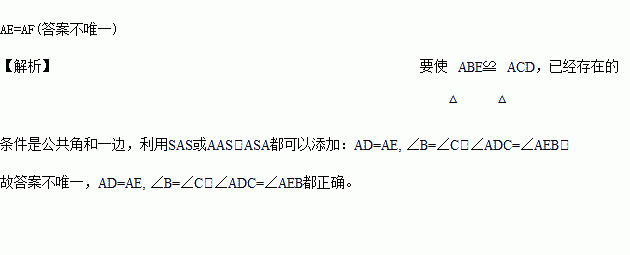如图,AB=AC,,若使△ABE≌△ACF,则还需要添加的条件是________.(只要写出一个答案).