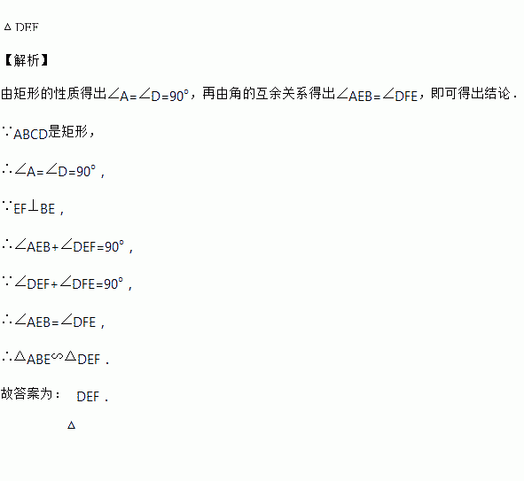 如图,在矩形中,点在上,交于,连接,则图中与一定相似的三角形是________.