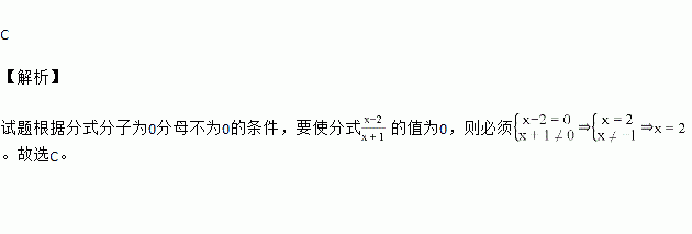 A. ﹣1 B. 0 C. 2 D. ﹣1或2