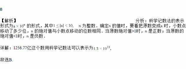 将1256.77亿用科学记数法可表示为(精确到百亿位)( )