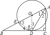 如图,已知点E在直角△ABC的斜边AB上,以AE为直径的⊙O与直角边BC相切于点D.