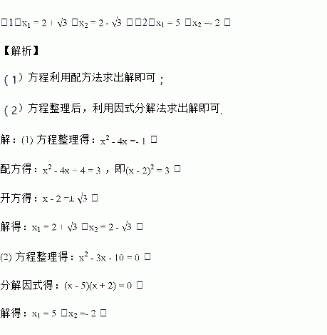 解方程:(1)x2-4x+1=0; (2)x(x-3)=10.