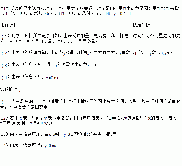 电话费(元) | 0.6 | 1.2 | 1.8 | 2.4 | 3.0 | 3.6 | 4.2 |