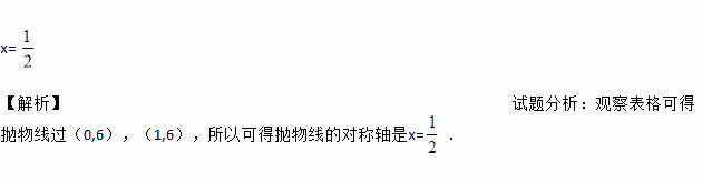 x= 【解析】试题分析:观察表格可得抛物线过(0,6),(1,6),所以可得抛物线的对称轴是x=.