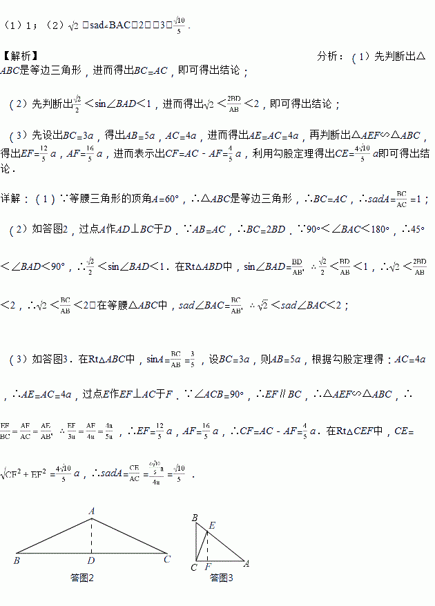 (1)若顶角A=60°,求sadA的值;
