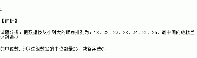“魅力凉都六盘水”某周连续7天的最高气温(单位°C)是26,24,23,18,22,22,25,则这组数据的中位数是( )