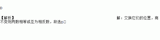 D 【解析】【解析】 交换它们的位置,商不变则两数相等或互为相反数,故选D.