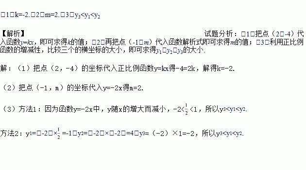 (2)若点(-1,m)在函数y=kx的图象上,试求出m的值;