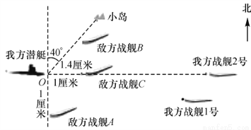 某次海战中敌我双方舰艇对峙示意图(图中1 cm代表20海里)如下,对我方潜艇O来说: