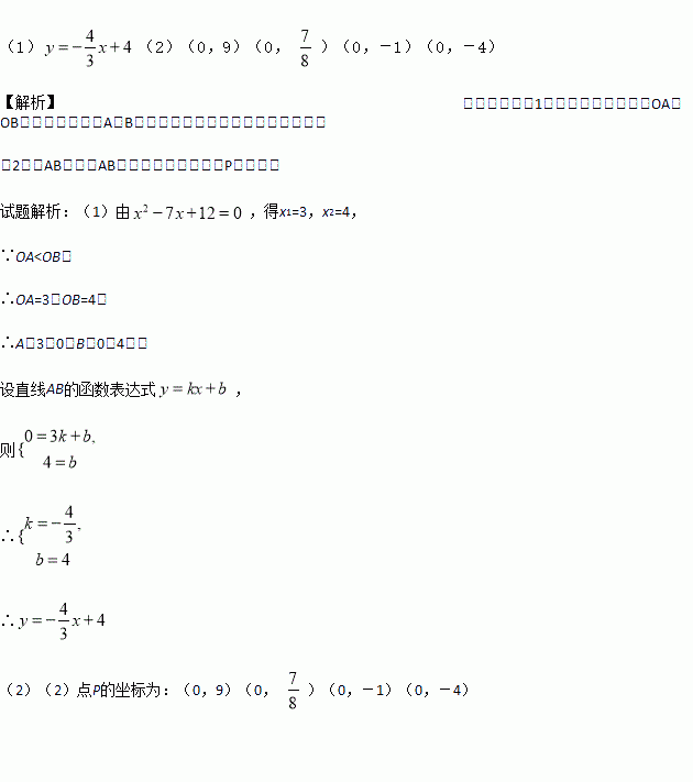 如图,在平面直角坐标系中,点O为坐标原点,直线l分别交x轴、y轴于A、B两点,OA<OB,且OA、OB的长分别是一元二次方程x2-7x+12=0的两根.