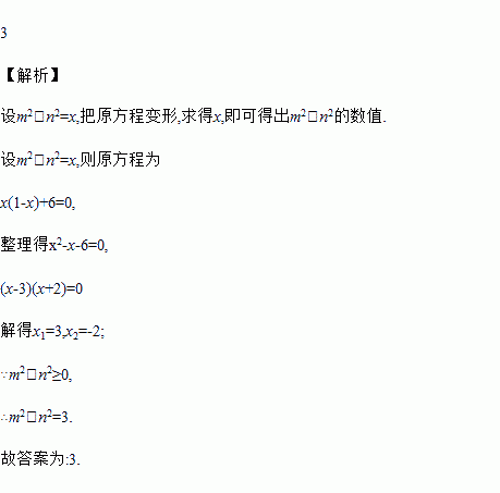 若(m2+n2)(1-m2-n2)+6=0,则m2+n2的值为________.