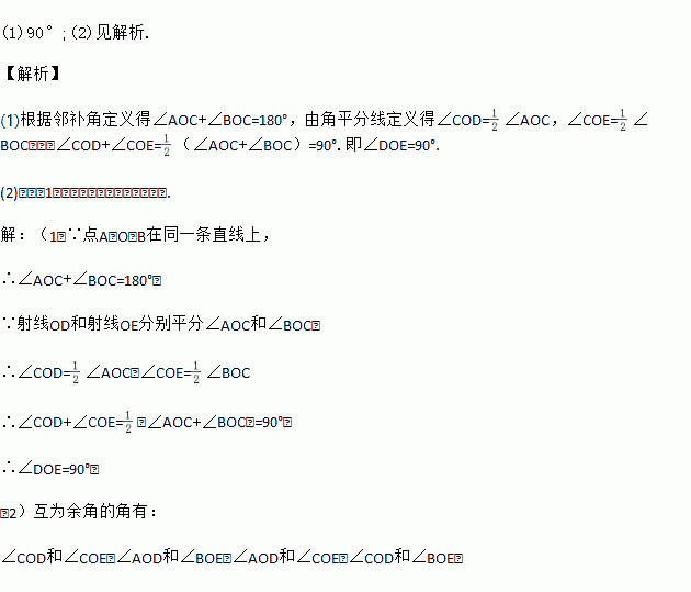 如图,点A,O,B在同一直线上,射线OD和射线OE分别平分∠AOC和∠BOC.