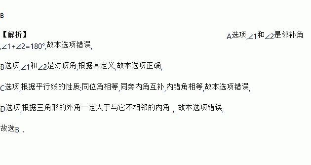 下面四个图形中,∠1=∠2一定成立的是( )