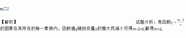 若函数y=的图象在其所在的每一象限内,函数值y随自变量x的增大而减小,则m的取值范围是_____.