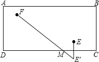 分析:根据题意:借助轴对称的性质,要使黑球E先碰撞台边CD反弹后再击中白球F,必须使E与F关于CD的对称点,与CD的碰撞点;三点在同一条直线上,据此,先先找E关于CD的对称点E′,连接E′F交CD于M,点M就是碰撞点.
