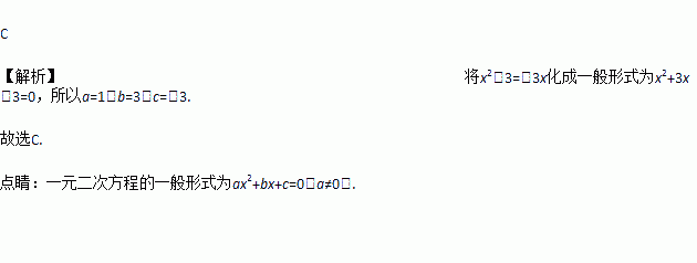 把化成一般形式后,a、b、c的值分别是( )