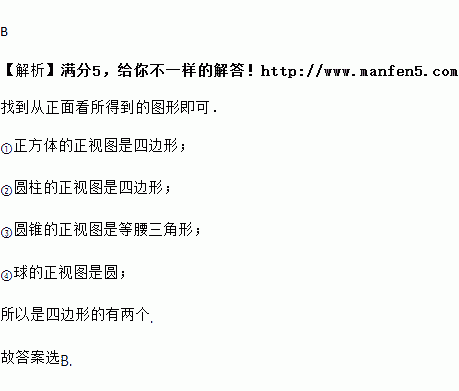 如图所示四个立体图形,从正面看到的平面图形是四边形的个数是( )