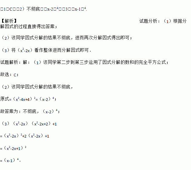 (2)该同学因式分解的结果是否彻底?(填“彻底”或“不彻底”).若不彻底,请直接写出因式分解的最后结果;
