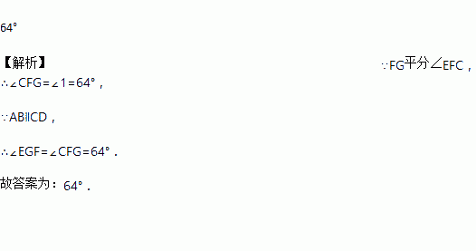 如图,AB∥CD,∠1=64°,FG平分∠EFC,则∠EGF=____°.