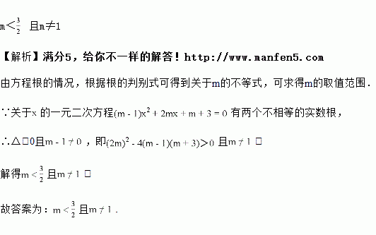 已知关于的一元二次方程,求:当方程有两个不相等的实数根时的取值范围