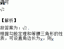 若等腰直角三角形斜边长为2,则它的直角边长为_________.