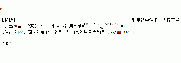 某校在开展“节约每一滴水”的活动中,从八年级的100名同学中任选20名同学汇总了各自家庭一个月的节水情况,将有关数据(每人上报节水量都是整数)整理如表:
