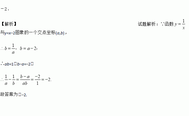 若函数与y=x﹣2图象的一个交点坐标(a,b),则的值为______.