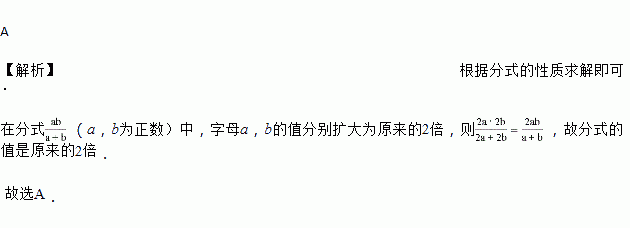 在分式 (a,b为正数)中,字母a,b的值分别扩大为原来的2倍,则此分式的值( )