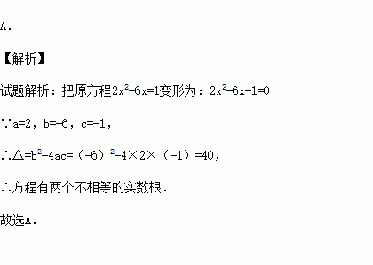 不解方程,判别一元二次方程2x2-6x=1的根的情况是 ( )