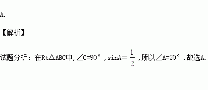 在Rt△ABC中,∠C=90°,若sinA=,则∠A的度数是