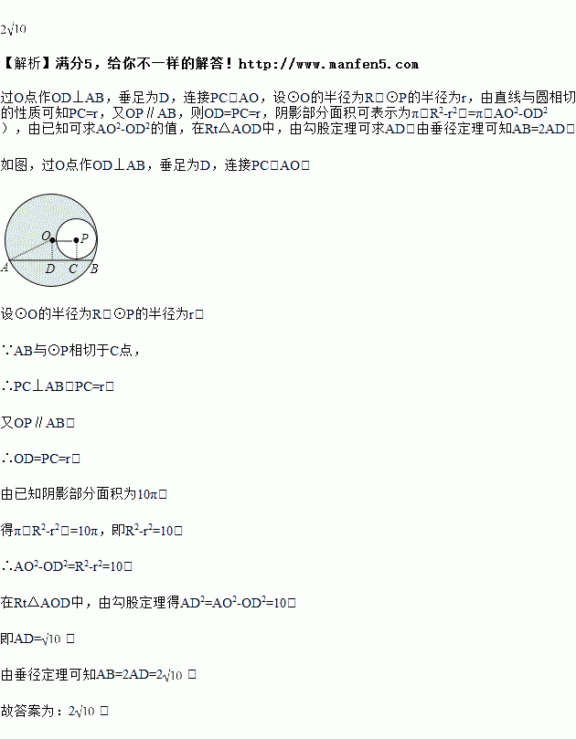 如图,内含于,的弦切于点,且.若阴影部分的面积为,则弦的长为________.