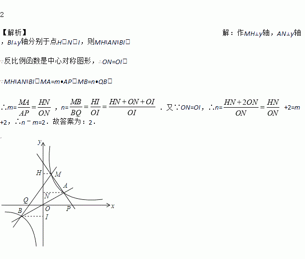 上有一点M(M在A的左侧),设直线MA,MB分别与x轴交于P,Q两点,若MA=m•AP,MB=n•QB,则n﹣m的值是________.