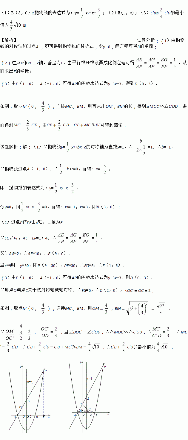 x2+bx+c,与x轴交于A、B两点(点A在点B的左侧),且点A坐标为(-1,0).又P是抛物线上位于第一象限的点,直线AP与y轴交于点D,与抛物线对称轴交于点E,点C与坐标原点O关于该对称轴成轴对称.