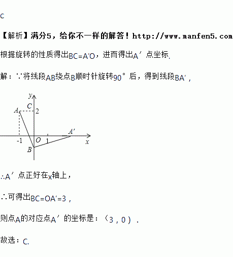如图,将线段绕点顺时针旋转后,得到线段,则点的对应点的坐标是( )