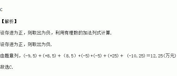 银行储蓄所办理了7笔储蓄业务,取出9.5万元一次,存8.5万元两次,取出5万元两次,存25万元一次,取出10.25万元一次,这时该银行现款增加了