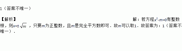 1(答案不唯一) 【解析】【解析】 若方程x2-m=0有整数根,则x=±,只要m为正整数,且m是完全平方数即可.故m可以取1.故答案为:1(答案不唯一).