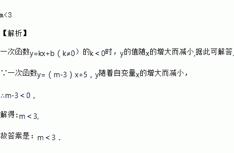 一次函数y=(m-3)x+5的函数值y随着x的增大而减小,则m的取值范围_______.