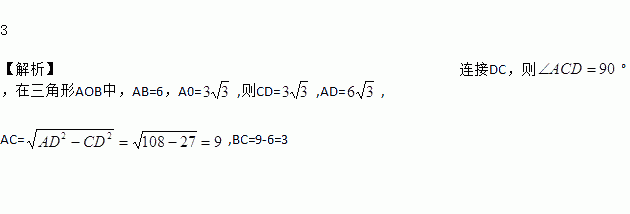 如图,AD和AC分别是⊙O的直径和弦,且∠CAD=30°,OB⊥AD,交AC于点B,若OB=3,则BC=__.