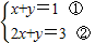 ②-①得x=2,把x=2代入①得y=-1,