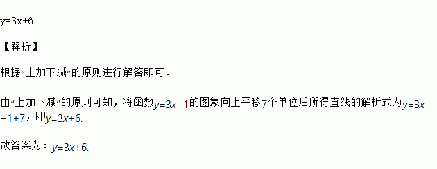 函数y=3x﹣1的图象向上平移7个单位后的解析式是_____.
