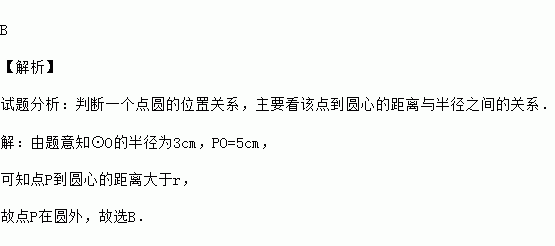 已知⊙O的半径为3cm,PO=5cm,则下列说法正确的是( )