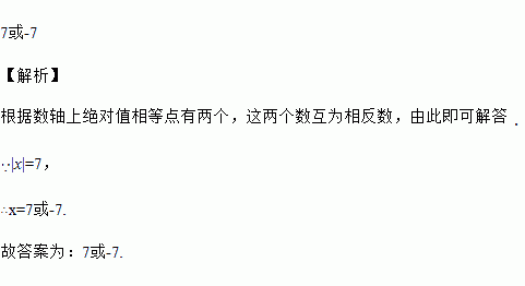已知|x|=7,则x的值是_____.