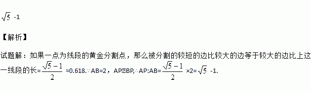 已知点P是线段AB的黄金分割点,AP>PB.若AB=2,则AP=_____.