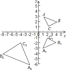 则A2(-2,-6),B2(-8,-4),C2(-4,-2);在坐标系中找出各点,画出图形即可,