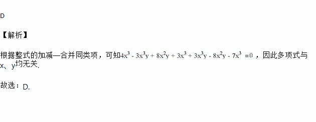 代数式4x3–3x3y+8x2y+3x3+3x3y–8x2y–7x3的值