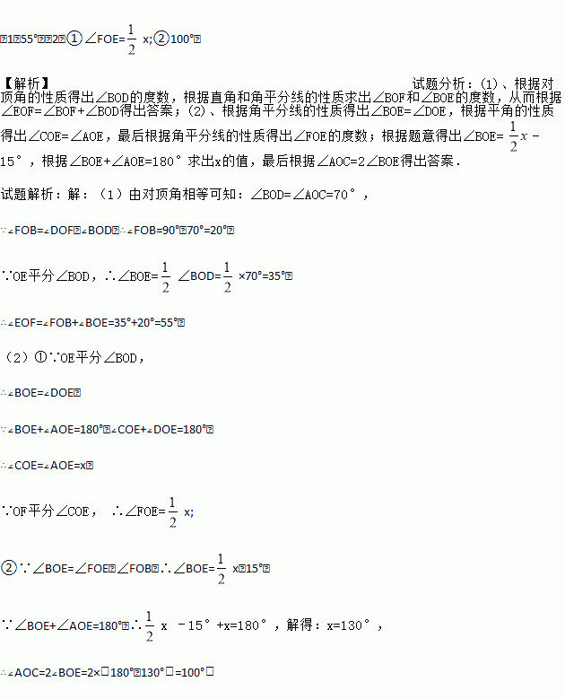 (1)若∠AOC=70°,∠DOF=90°,求∠EOF的度数;