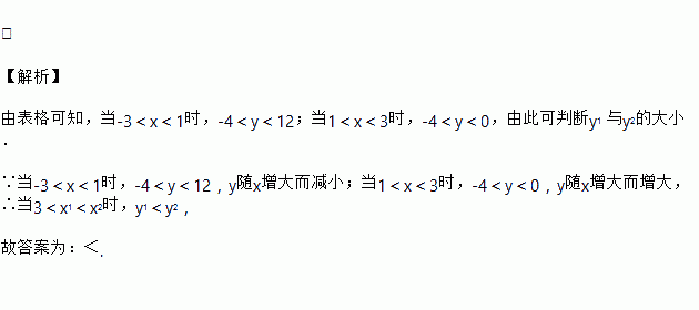 若点A(x1,y1)、B(x2,y2)都在这个二次函数的图象上,且3<x1<x2,则y1、y2的大小关系是y1_____y2,.(填写“<”,“>”或“=”)