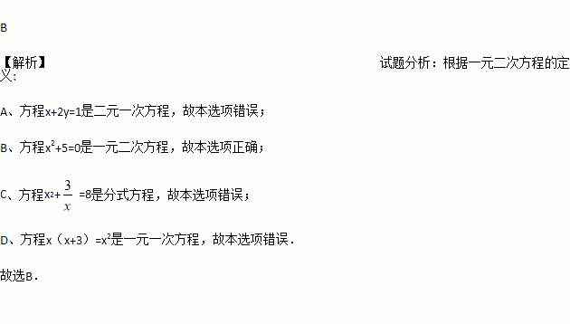 A. x+2y=1 B. x2+5=0 C. x2+=8 D. x(x+3)=x2﹣1
